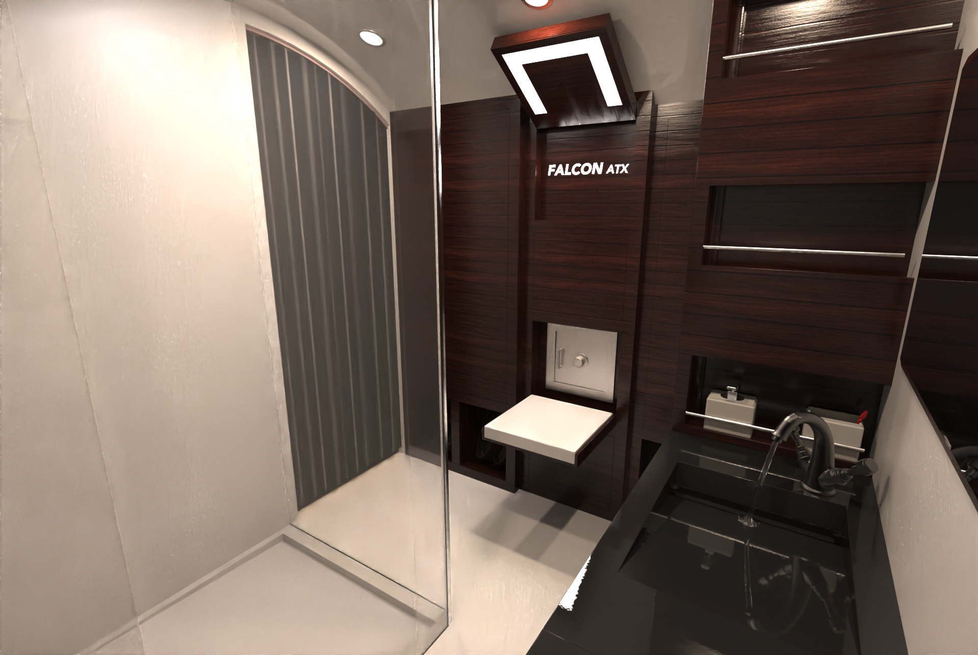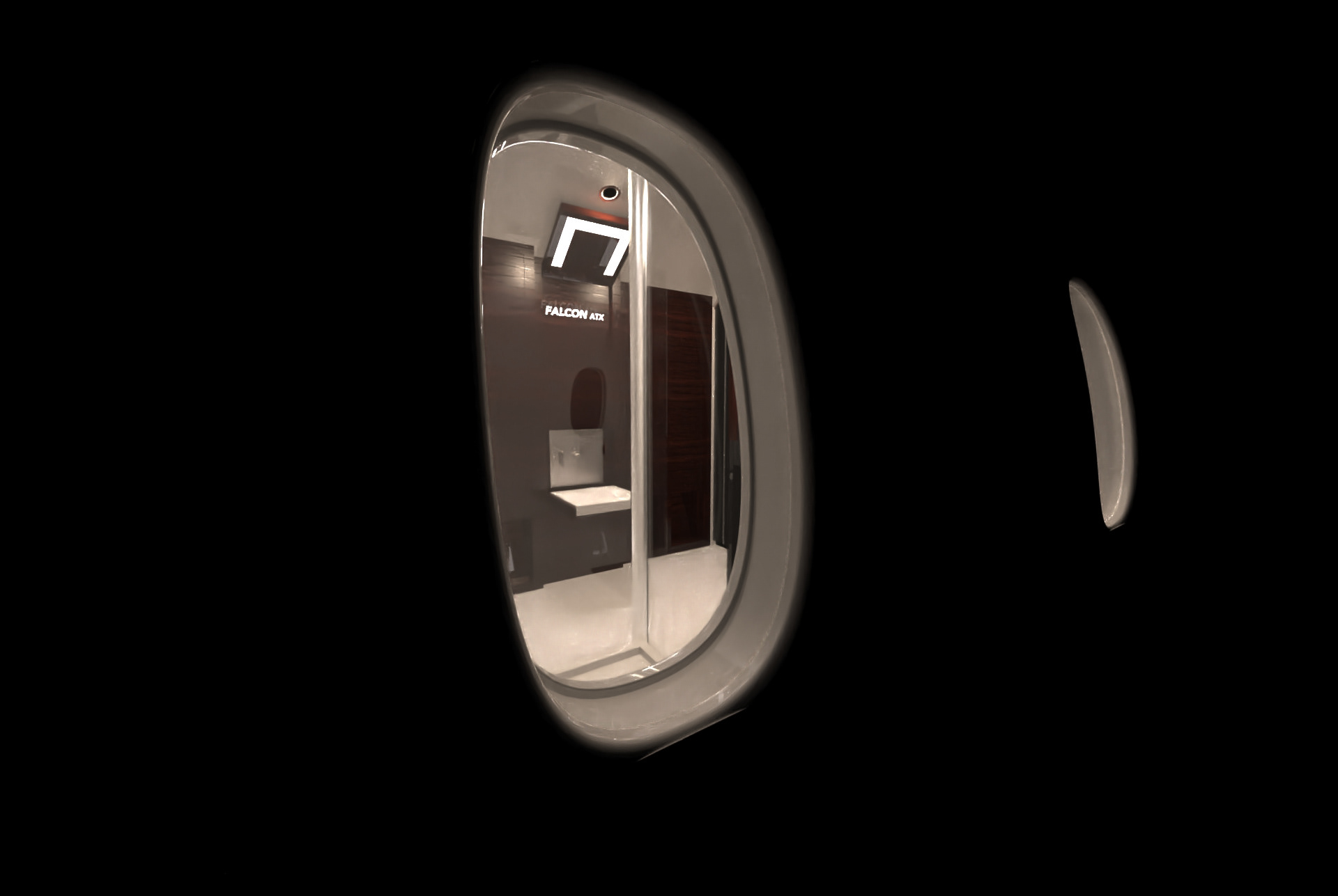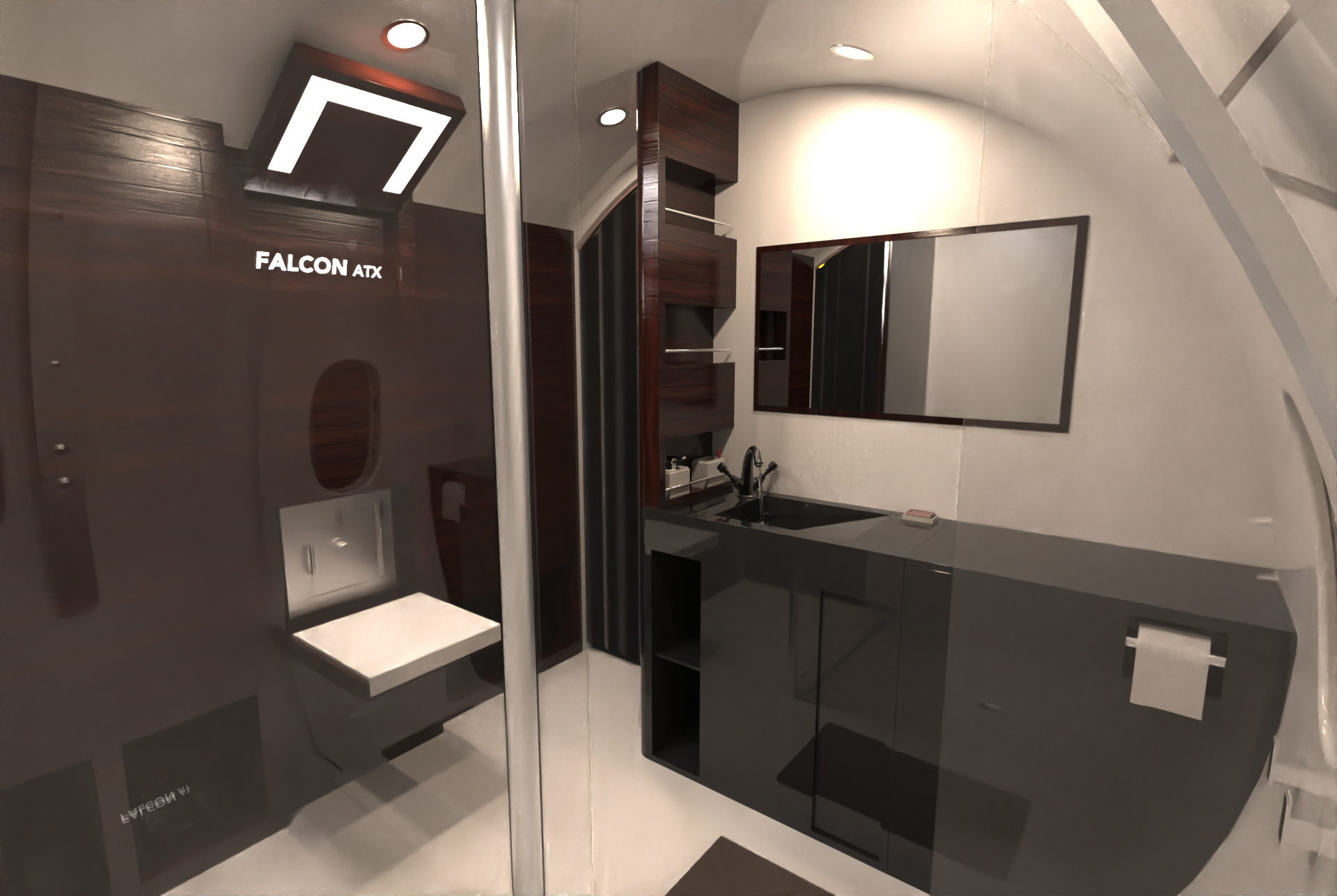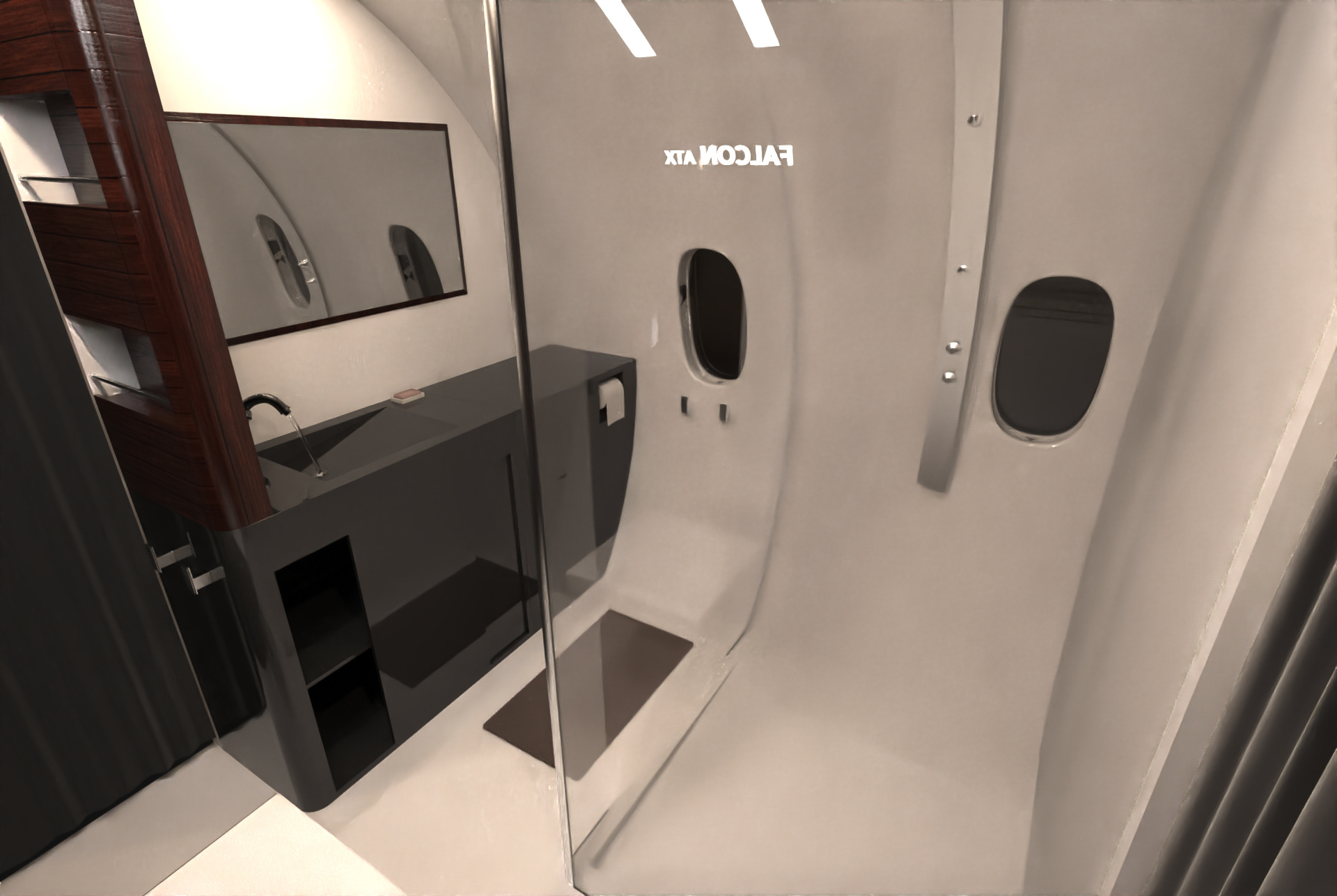 Bathroom design for a falcon jet. The main aim was to bring home comforts back to the heart of this aircraft.